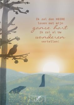 Opdruk: Ik zal den Heere loven met mijn ganse hart. Ik zal uw wonderen ...