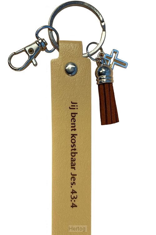 - Kunstleren sleutelhanger met opdruk: Jij bent kostbaar - Jer. 43:4